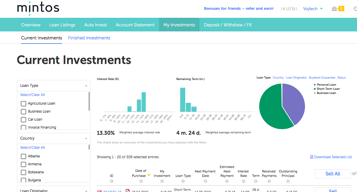 The average interest rate is maybe not that that high compared to other platforms, but also not that low either (depends which platforms you compare with:). The team behind is very professional and they seem to have much less problems during the Covid-19 pandemic, so I think it’s a great option for those, who want to choose something safer but still get some nice passive income.