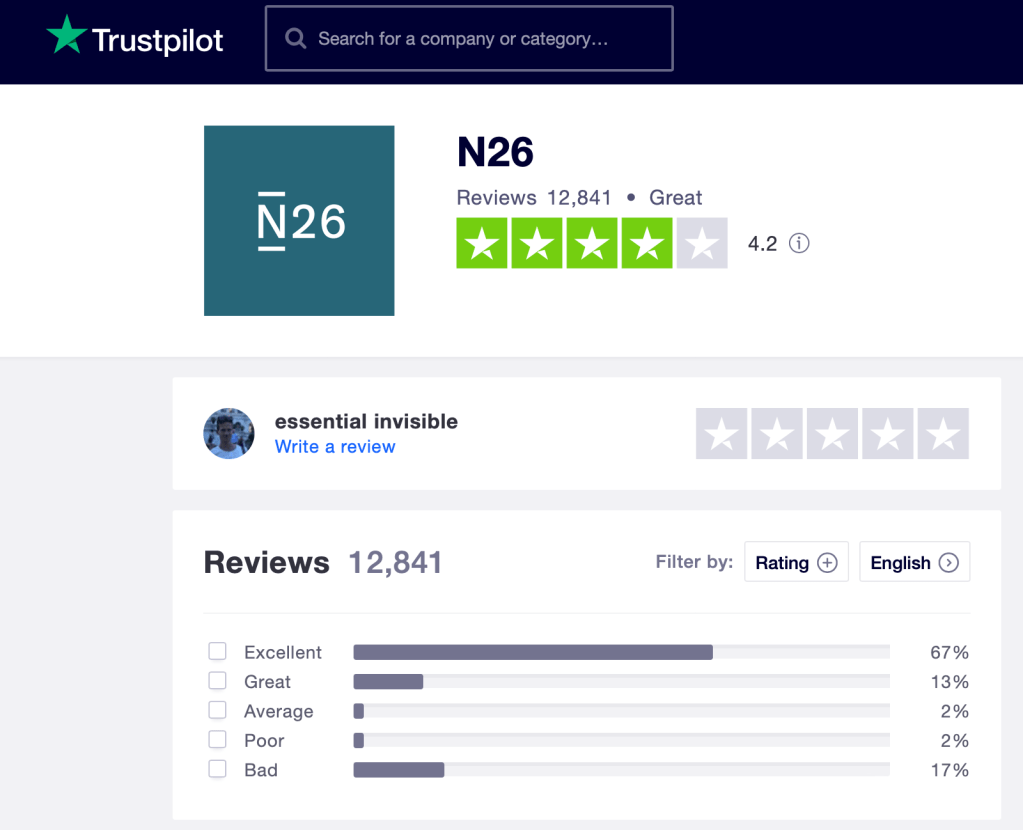 Also, if you are unhappy with your bank or if you are hesitating which bank to use for international transfers, I would like to recommend N26 online bank from Germany!